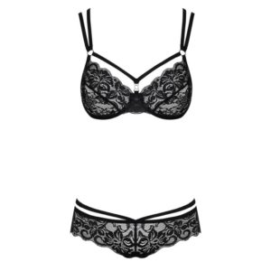 Bügel-BH und String ganz aus Spitze. Die verführerische Unterwäsche für jeden Anlass auch einfach, wenn man sich nur unten drunter sexy fühlen möchte. Die 2 x 2 Träger sind alle individuell verstellbar und ein Paar ist im Rücken gekreuzt. Der Strassstein im Dekolleté und am String hinten sind zusätzliche Eyecatcher.