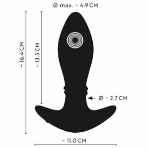 Konisch geformter, doppelmotoriger Vibro-Analplug RC Moving Rings Butt Plug von ANOS für eine intensive anale Massage. Zusätzlich stimulieren 2 sich hoch und runter bewegende Massage-Ringe (Moving Rings) in der Verjüngung gezielt den After wie beim besten Rimjob.